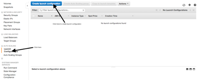 - From EC2 console click on Auto Scaling Group which is below the launch configuration. Then click on create auto scaling group.
